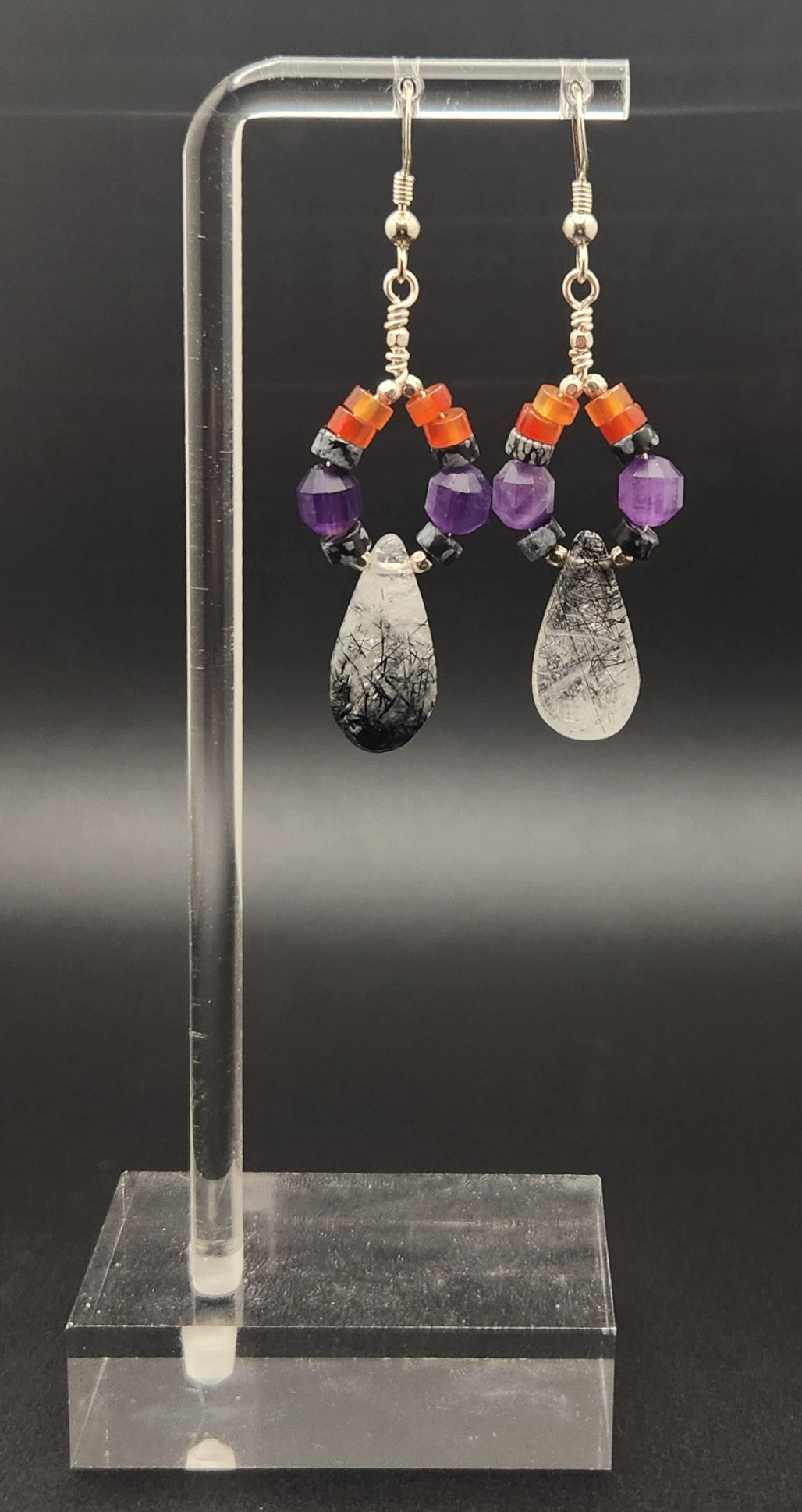 Black Tourmaline Rutilated Quartz Amethyst Sterling Silver Earing