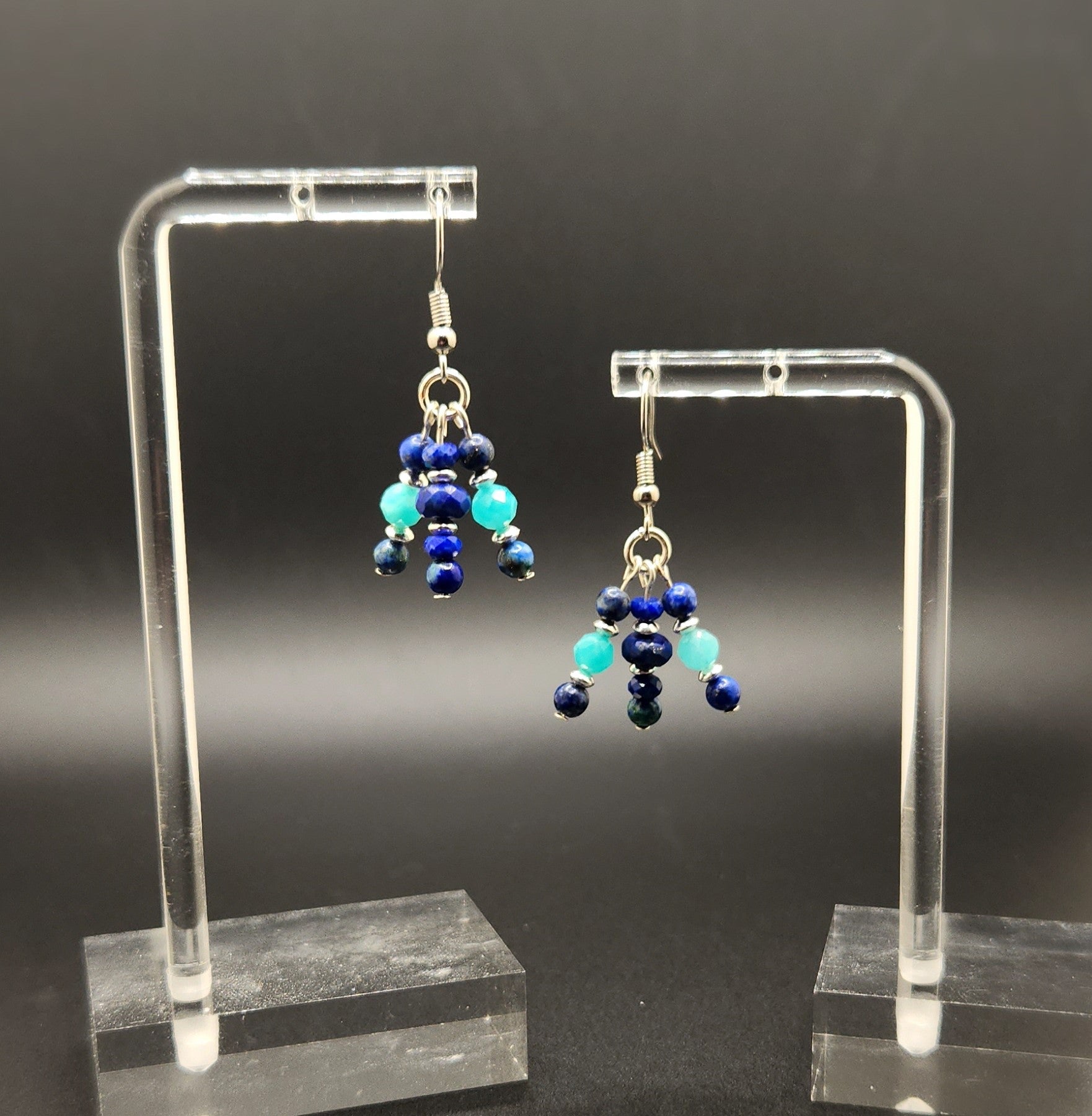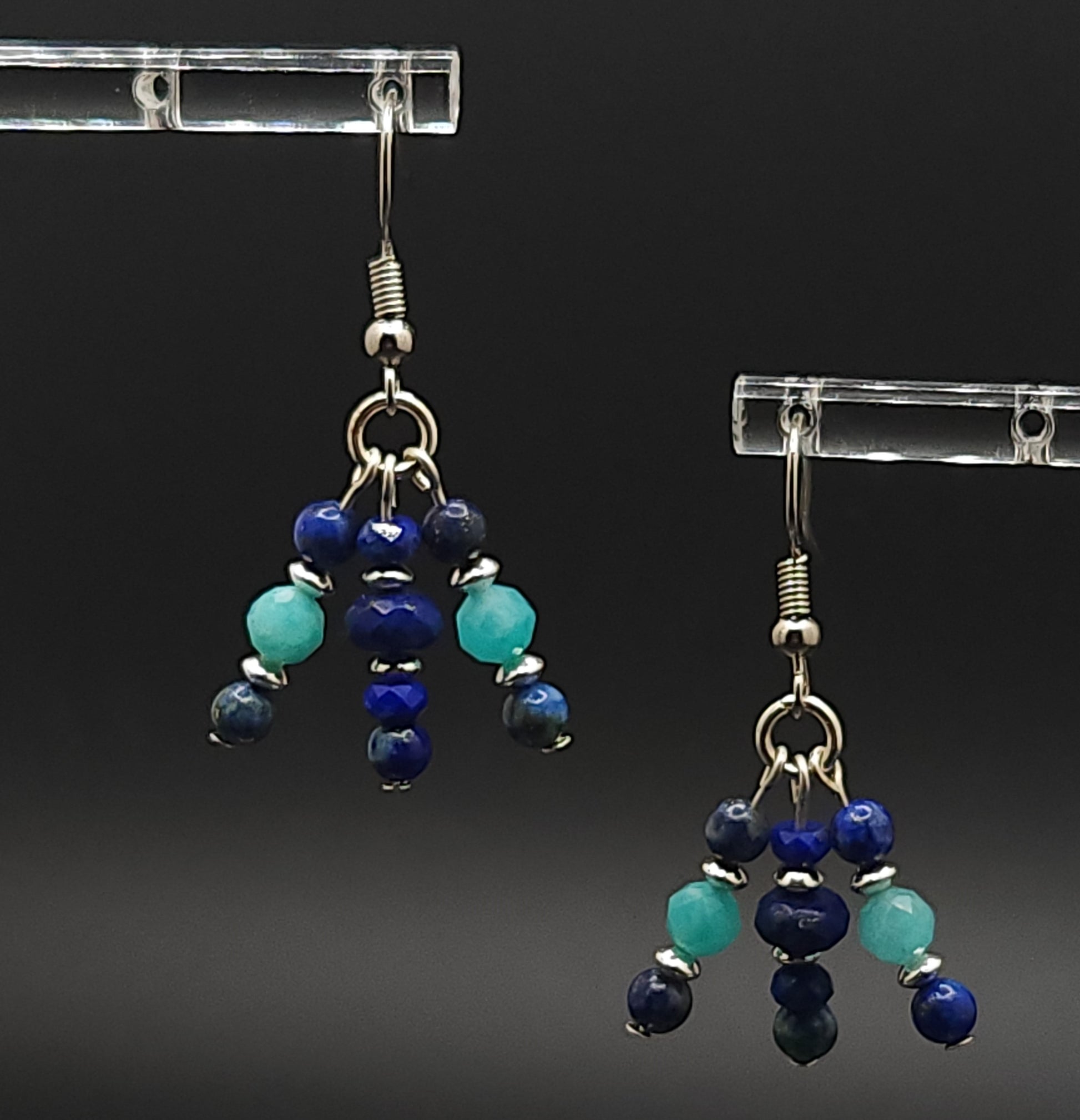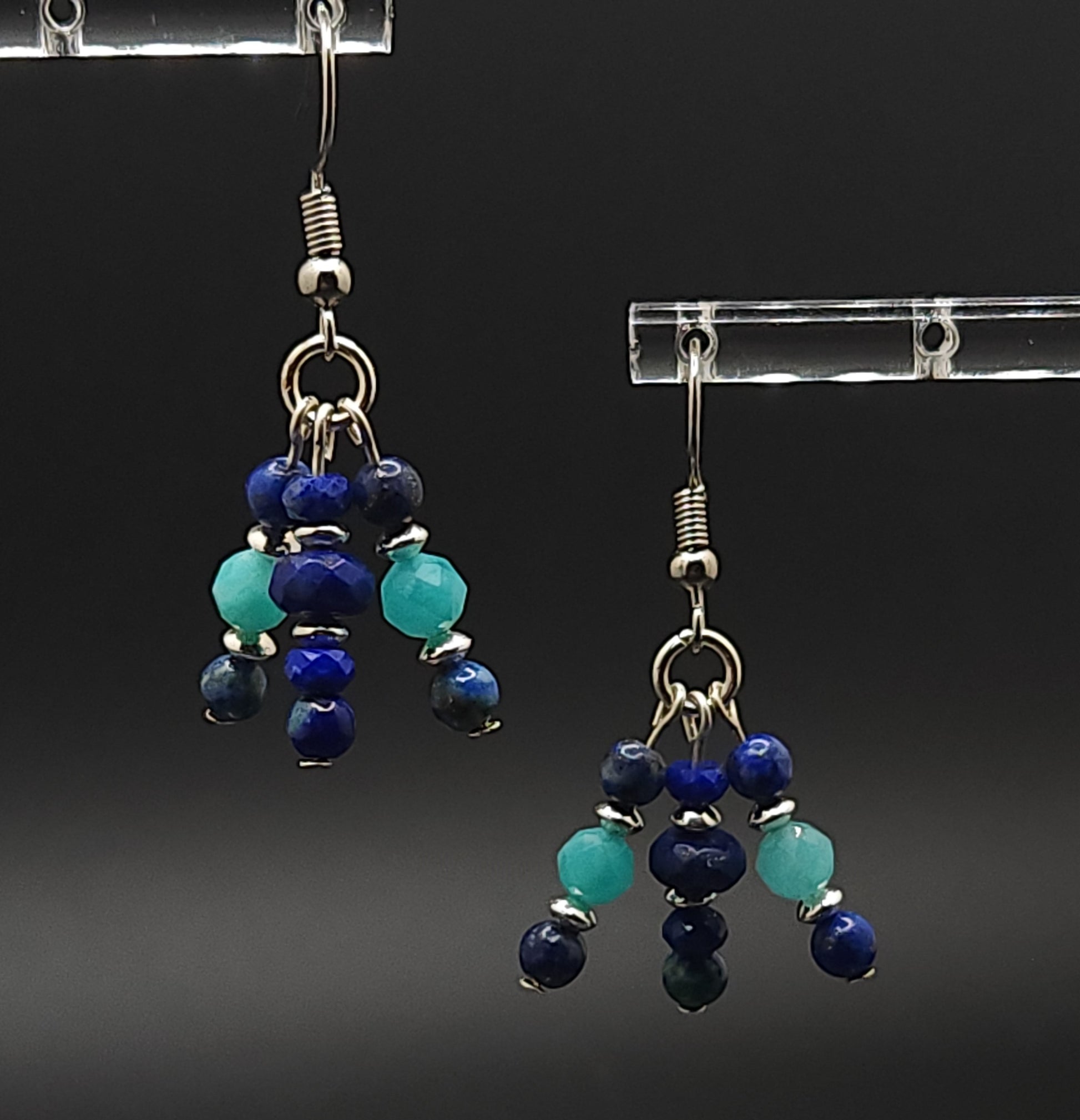 Natural Amazonite, Natural Azurite Malachite Chrysocolla beads, Faceted Lapis Beads, Sterling Silver