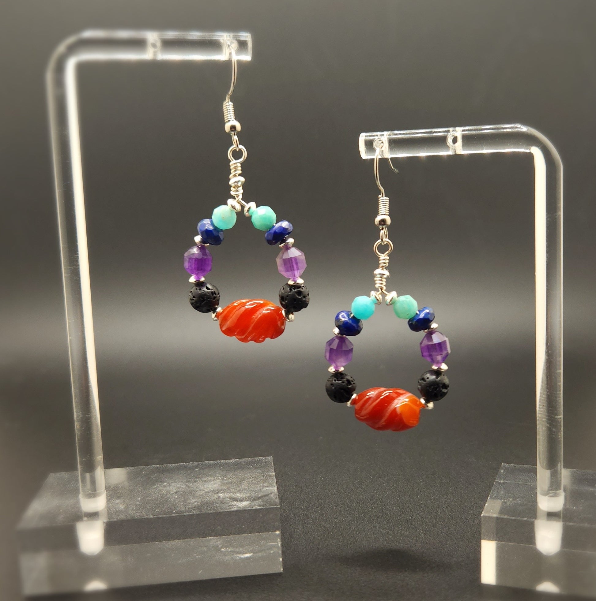 Carved Natural Orange Red Carnelian, Natural Purple Amethyst, Faceted Lapis, Natural Lava,