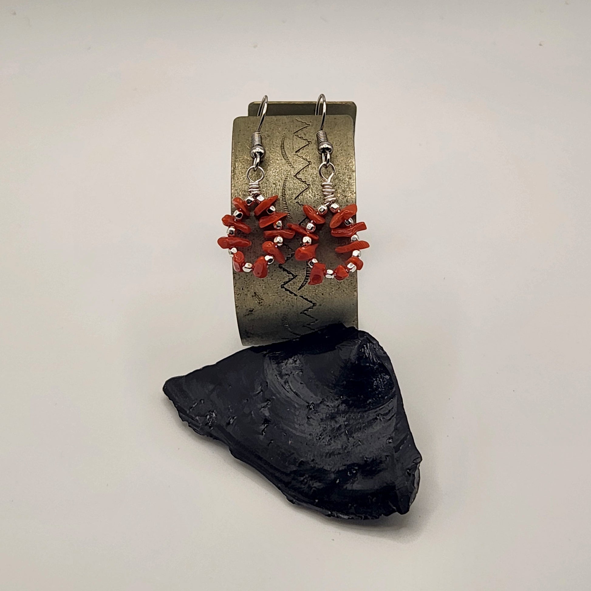 Mediterranean Coral red and silver dangle earrings Perfect for those beach days or dresses up nice for a dinner our night out for fun. Small in size yet still a stunning wear.