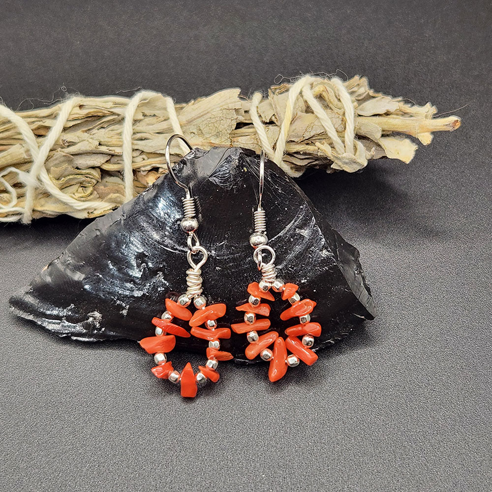 Mediterranean Coral & Sterling Silver Saucer Beaded Earing Pair