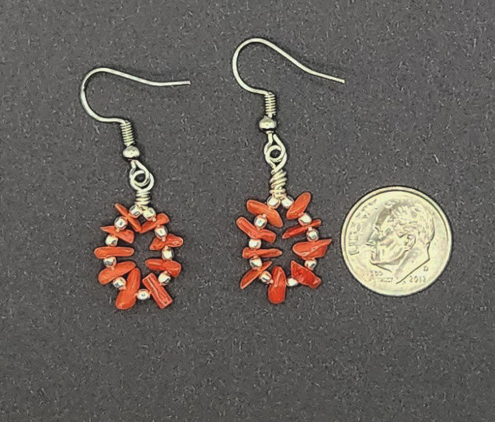 Mediterranean Coral Sterling Silver Faceted Nugget Earing